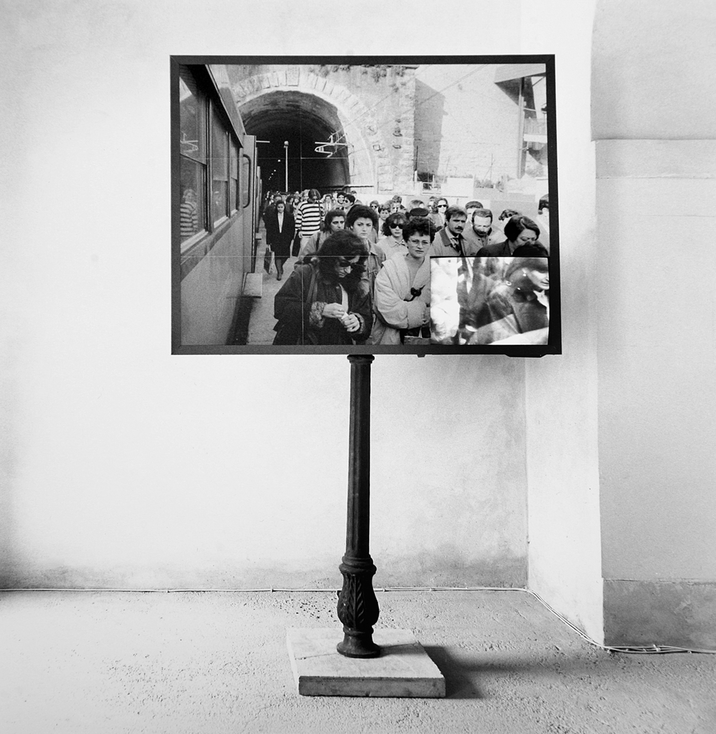 LuogoSpoleto – Arte DomaniAnno1993TecnicaStrutture in ferro, stampe fotografiche b/n su alluminio, schermi video, lettori dvd